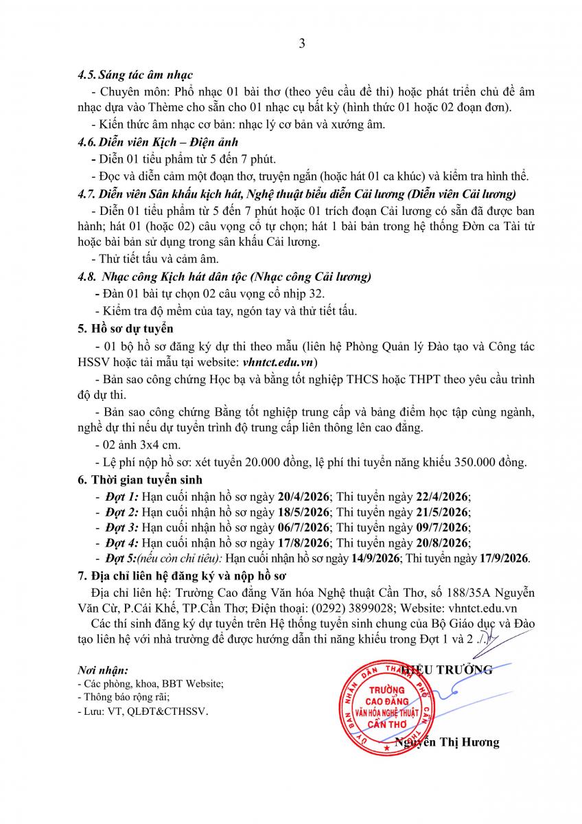 Thông báo nhập học lớp Bồi dưỡng chức danh nghề nghiệp chuyên ngành Đạo diễn và Diễn viên tại TP Cần Thơ