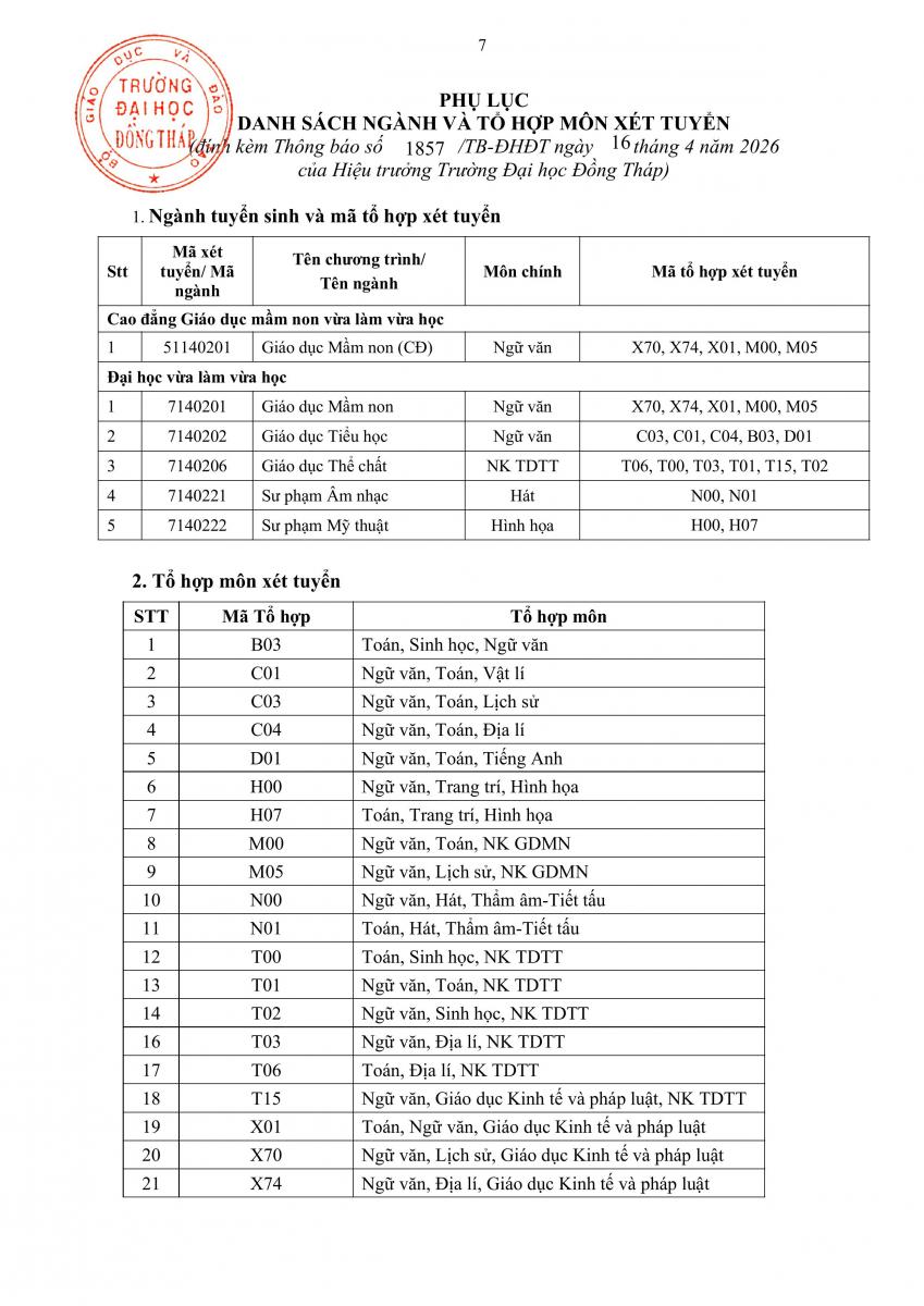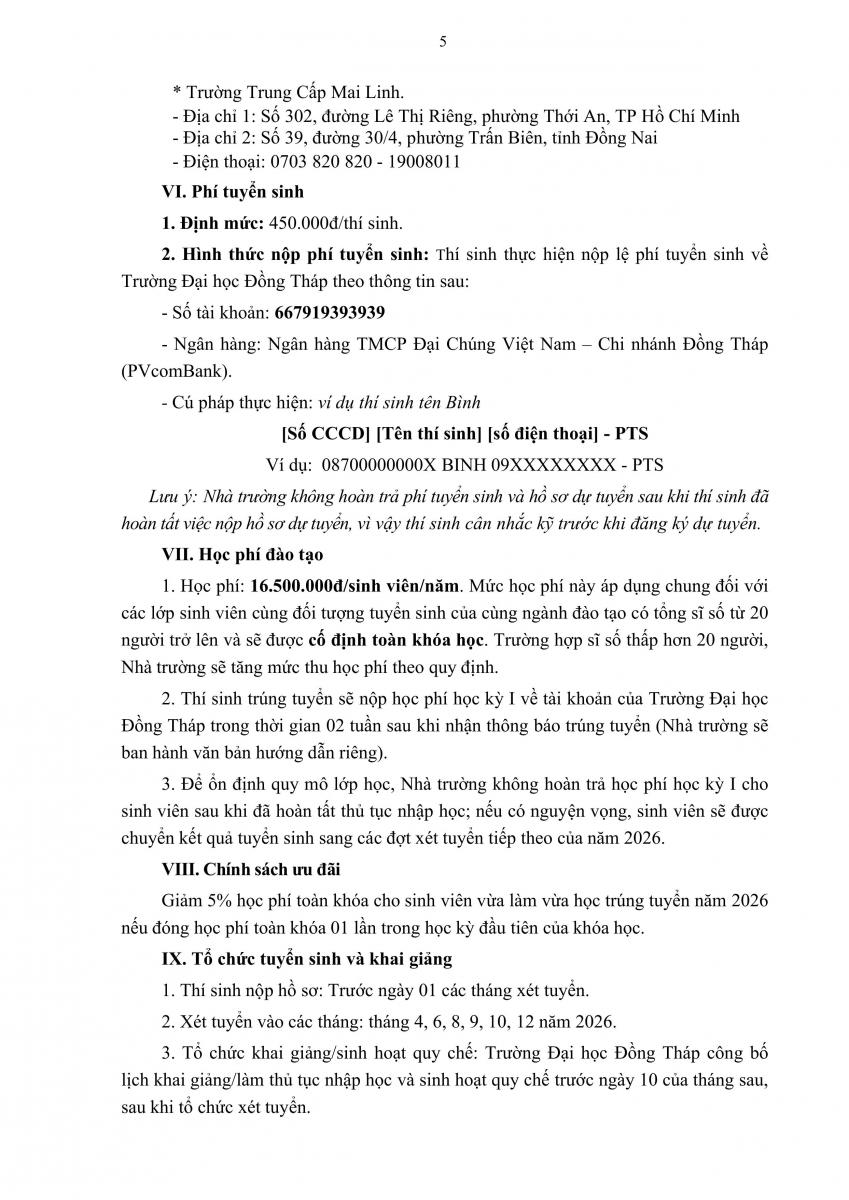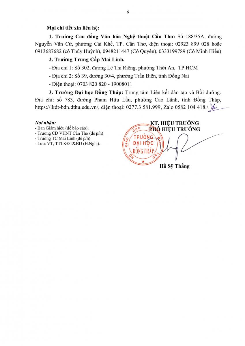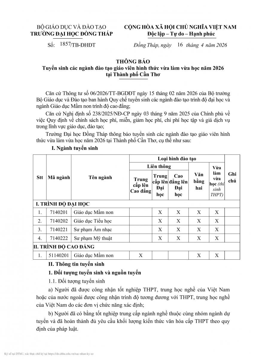 Thông báo tuyên sinh Đại học liên kết Trường Đại học Đồng Tháp